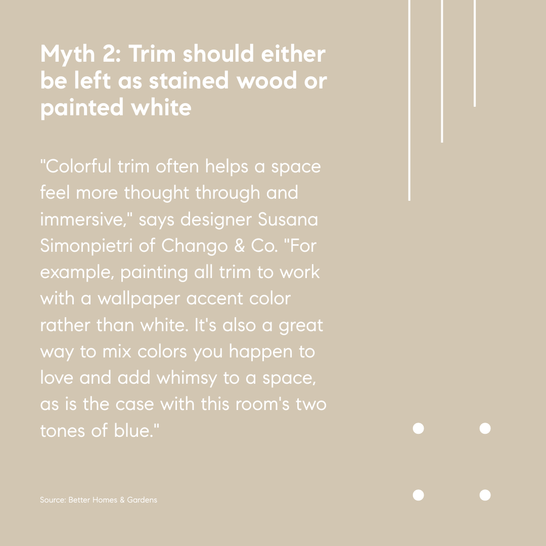 Another common misconception in the realm of paint revolves around trim color. It's often believed that trim should be limited to either classic stained wood or crisp white paint. This rigid viewpoint can limit the creative potential of a space and stifle the harmony between various design elements.