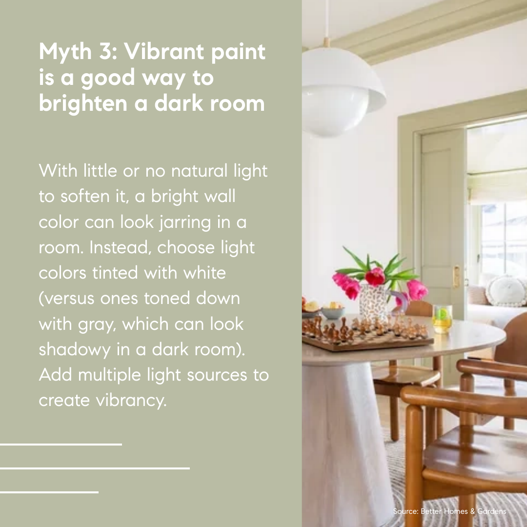 Misconception 3: Vibrant Paint Fixes Dark Rooms